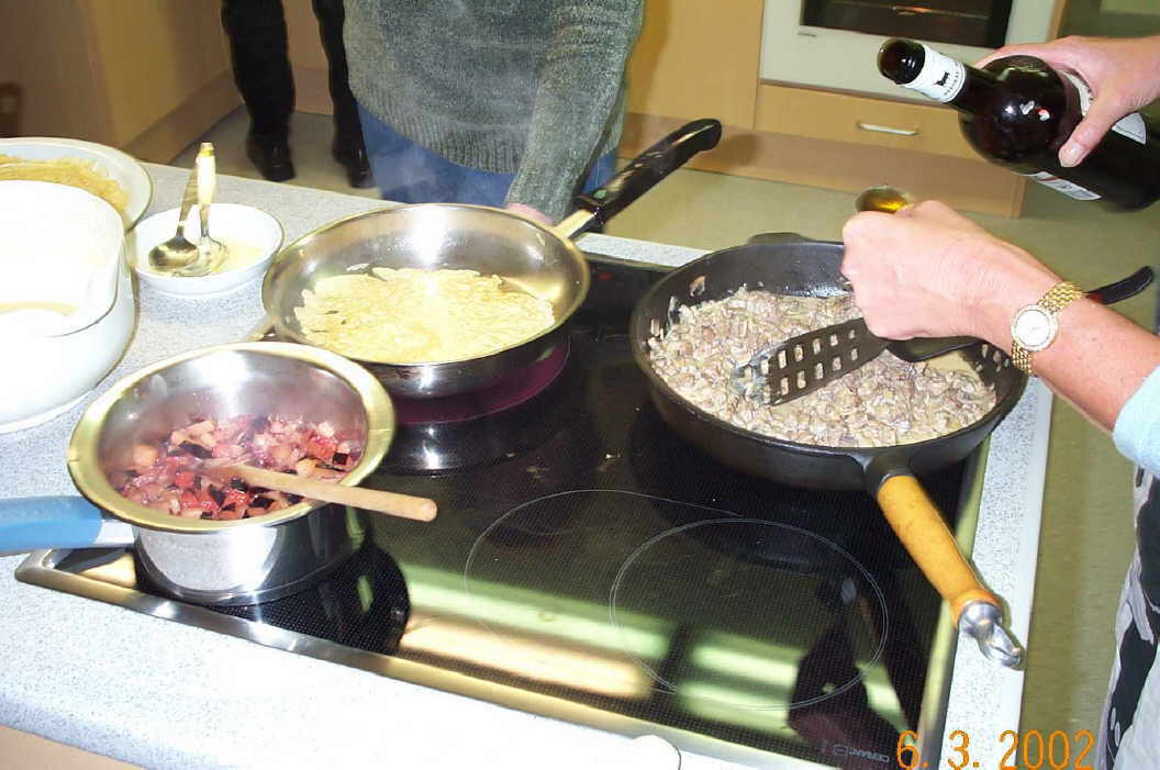 erhitzen und das Fleisch 15 Min. kräftig anbraten. Zwiebel und Pilze nacheinander zum Fleisch geben und gut durchbraten.