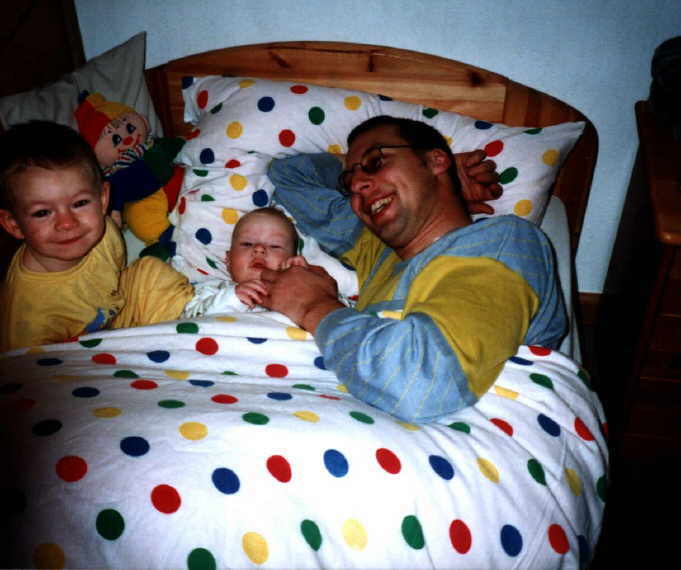 bei ihm anfragen. Gott sei Dank bremst seine hübsche Frau ihn, sonst würde er wahr- scheinlich noch mit der Parkuhr um einen Rabatt feilschen. Er fährt eine Honda VFR namens Hannibal, mit Klorollen- halter . Schlank und groß wie er ist, würde man den Wind durch seine Rippen pfeifen hören, wäre da nicht der kleine Bauch, der sein T-Shirt prall auffüllt.. Mittlerweile gesellte sich zu seinem Wagenpark auch noch eine T3-DOKA (Codename: Tupperware).Aufgrund technischer Probleme, 2 Motoren und anderer Klein schrott, liegt er mehr unter dem Auto als das er fährt. Seine beide Jungen kennen die DOKA besser als ihr Kinderzimmer.